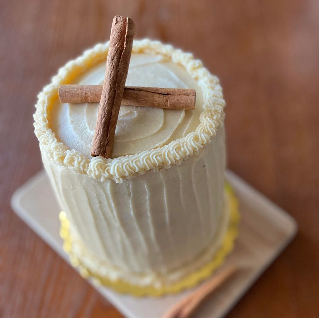 Sourdough chai cake with chai buttercream, made with spice blends from Saucy Brown Girl